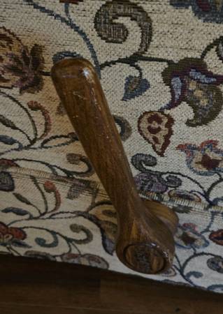 Pristine condition, adjusting recliner. Professionally Re-upholstered in 2023. Looks new. Approximately 37.5 inches high by 33 inches wide by 34 inches deep closed. Heavy, hardwood frame. This recliner was in a guest room and was rarely sat on.